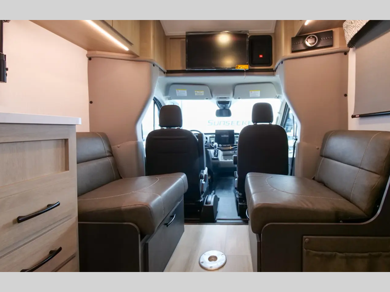 Sleeps 2 Slides 1 Length 26 ft 1 in Ext Width 7 ft 3 in Ext Height 10 ft 5 in Int Height 6 ft 6 in GVWR 10360 lbs Fresh Water Capacity 35 gals Grey Water Capacity 30 gals Black Water Capacity 28 gals Generator 2.8KW Onan Gas Fuel Type Gasoline Engine Ford EcoBoost 3.5L Chassis Ford Transit Fuel Capacity 25 gals Wheelbase 178 in Available Beds Two Twin Refrigerator Type LP Electric Refrigerator Size 5.3 cu ft Convection Cooking Yes Shower Size 24" x 36" Number of Awnings 1 Axle Weight Front 4130 lbs Axle Weight Rear 7275 lbs LP Tank Capacity 41 lbs Water Heater Type Truma Combi AC BTU 13500 btu Basement Storage 30.5 cu. ft. TV Info LR 12V LED Flat Panel TV, BR 12V TV Awning Info 15' Power with LED Lights Gross Combined Weight 13500 lbs Shower Type Standard Electrical Service 30 amp Similar Floorplans