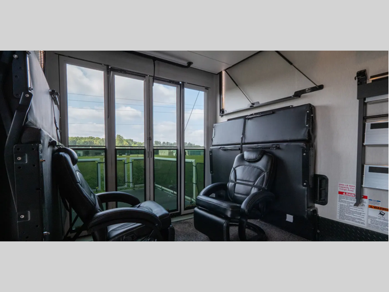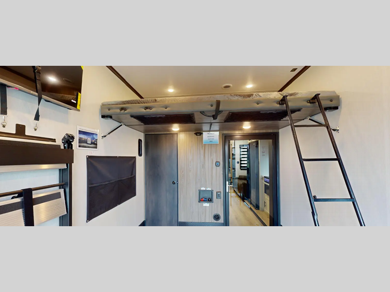 There is a 3,000 lb. rated ramp door on each model, along with DuraPoxy gas/oil resistant flooring, and 5,000 lbs. tie-downs to keep your toys secure on the way to the campground. You can enjoy your toy hauler for years to come thanks to the aluminum frame sidewalls and radius PVC walk-on roof, and the 102" wide body construction will make it easier than ever to load up dirt bikes, four-wheelers, or kayaks! Inside, you'll love the zebra shades in the living areas, the glass shower doors, the quick set garage bed system, and many more comforts!