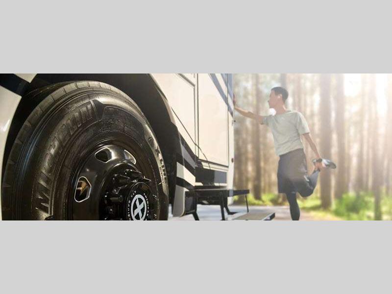 The exterior full-paint Masterpiece Finish is an industry exclusive, and it will attract every eye on the road. These luxurious coaches are absolutely filled to the brim with enticing amenities, like the convection microwave, Samsung LED TV, Bose sound bar sound system, and Xite dash radio with 9" monitors. There is also a Nav-N-Go navigation system, Villa Comfort Fit furniture, plush pillowtop mattress, and wireless phone charging mat.