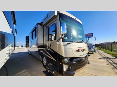 Sleeps 5 Slides 3 Length 43 ft 9 in Ext Width 8 ft 6 in Ext Height 13 ft 1 in Int Height 6 ft 11 in Interior Color Alora, Bayshore, Catalina, Stratton Exterior Color Champagne, Salsa, Seaspray, Steely Hitch Weight 15000 lbs GVWR 51000 lbs Dry Weight 40000 lbs Cargo Capacity 11000 lbs Fresh Water Capacity 105 gals Grey Water Capacity 75 gals Black Water Capacity 55 gals Furnace BTU 50000 btu Generator 10.0 Kw Onan Fuel Type Diesel Engine Cummins 8.9L Chassis Freightliner Tag Axle Horsepower 450 hp Fuel Capacity 150 gals Wheelbase 288 in Available Beds King Torque 1250 ft-lb Refrigerator Type Whirlpool Refrigerator Size 19.7 cu ft Convection Cooking Yes Cooktop Burners 3 Shower Size 50" x 34" Number of Awnings 1 Axle Weight Front 19000 lbs Axle Weight Rear 20000 lbs Axle Weight Tag 12000 lbs LP Tank Capacity 22 gals Water Heater Type Demand AC BTU 45000 btu TV Info LR Samsung LED TV, BR Samsung LED TV Awning Info Girard® G2000 power with wind sensor, remote control & LED lights Washer/Dryer Available Yes Gross Combined Weight 66000 lbs Shower Type Shower w/Seat Electrical Service 50 amp Similar Motor Home Class A - Diesel Floorplans