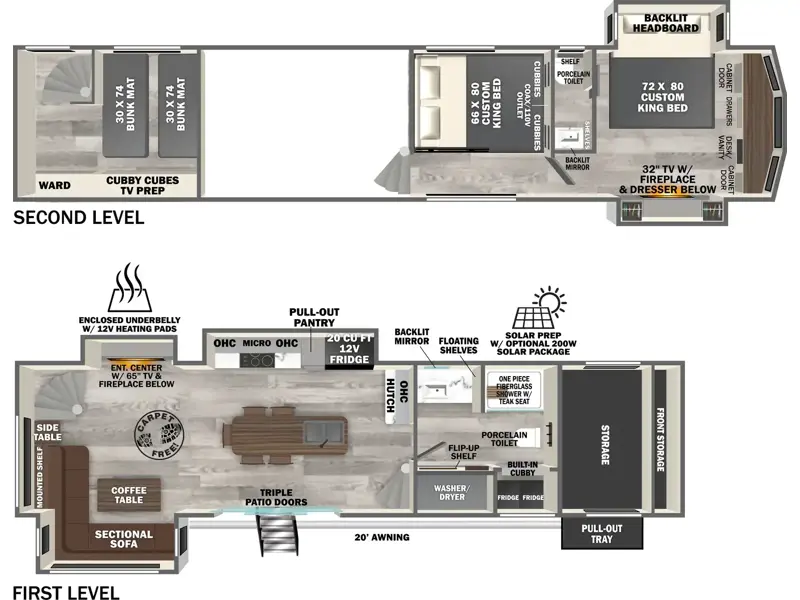 - 60" x 80" Beds in all Master Bedrooms (66 x 80 in 261FKRB, 270FKS, 308RL & 322VIEW)