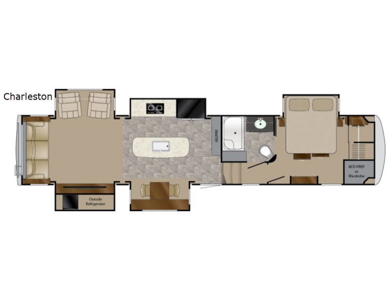 This Landmark 365 Charleston fifth wheel by Heartland RV offers a spacious rear living layout. This unit also features FIVE slides, with four of them found in the main kitchen and living area giving it a true at-home feel. There is also a queen size bed in the master bedroom!