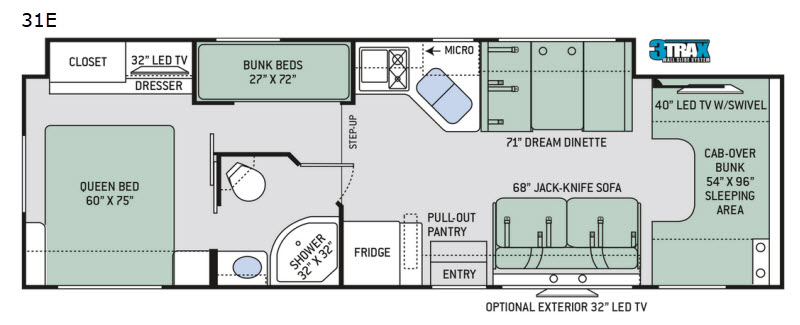 - 40" Mid-Ship TV in Living Area (28Z, 31Y)