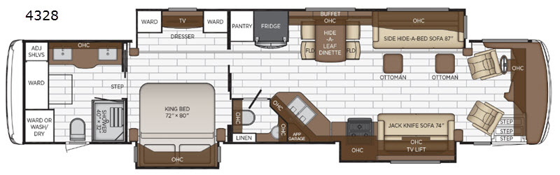 - Freightliner® Tag Axle 450Hp on 40’-43’ Floorplans